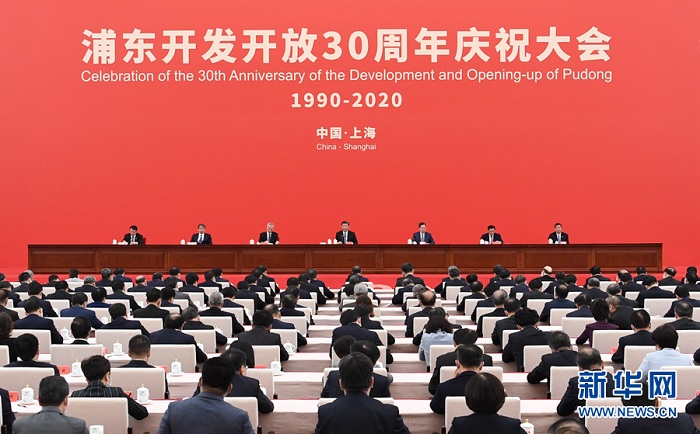 11月12日,浦东开发开放30周年庆祝大会在上海市举行。中共中央总书记、国家主席、中央军委主席习近平在会上发表重要讲话。新华社记者 翟健岚 摄
