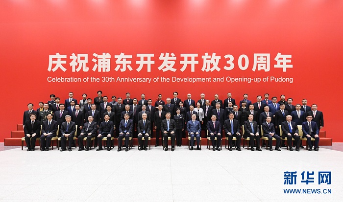 在热烈的掌声中,习近平发表重要讲话。他强调,30年前,党中央全面研判国际国内大势,统筹把握改革发展大局,作出了开发开放上海浦东的重大决策,掀开了我国改革开放向纵深推进的崭新篇章。党中央对浦东开发开放高度重视、寄予厚望,强调以上海浦东开发开放为龙头,进一步开放长江沿岸城市,尽快把上海建成国际经济、金融、贸易中心之一,带动长江三角洲和整个长江流域地区经济的新飞跃,要求浦东在扩大开放、自主创新等方面走在前列。进入新时代,党中央继续对浦东开发开放提出明确要求,把一系列国家战略任务放在浦东,推动浦东开发开放不断展现新气象。
