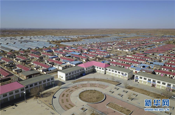 这是群众易地扶贫搬迁入住的甘肃省古浪县黄花滩生态移民区感恩新村(3月10日摄,无人机照片)。 新华社记者 范培珅 摄