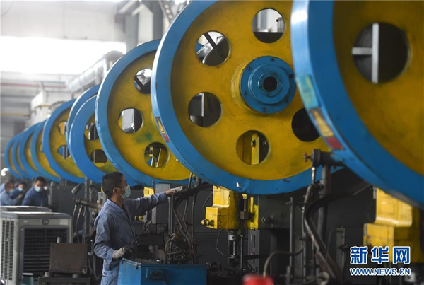 工人在位于店口镇的浙江盾安智控科技股份有限公司锻压车间内操作(2月23日摄)。位于浙江省诸暨市的工业重镇店口镇在严格疫情防控的同时,由政府出资包车前往多地帮助企业接回员工返岗复工,并推出链式复工复产相关政策,协调当地大企业“以大带小”帮助产业链条上的中小企业解决人员、住宿等问题。 新华社记者 韩传号 摄