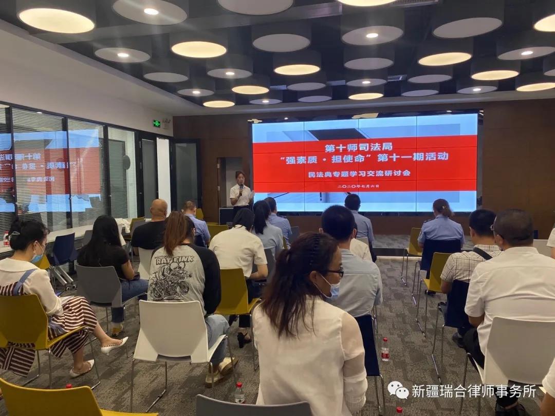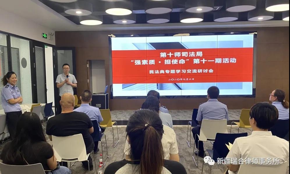 2020年5月28日,十三届全国人大三次会议审议通过了《中华人民共和国民法典》。《民法典》是新中国成立以来第一部以“法典”命名的法律,开创了我国法典编纂立法的先河,是新时代我国社会主义法治建设的重大成果,具有里程碑意义。为深入贯彻落实习近平总书记重要讲话精神,推动《民法典》的学习宣传和贯彻实施,2020年7月6日,第十师司法局联合新疆瑞合律师事务所、新疆北屯律师事务所、新疆兰河律师事务所开展“强素质、担使命”《民法典》专题学习交流研讨会。
