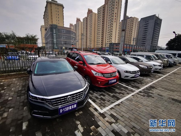 图为以蔡国强等人为首的黑社会性质组织案件、以吴领会为首的黑社会性质组织案中的部分涉案车辆(11月5日摄)。新华社记者 姚友明 摄